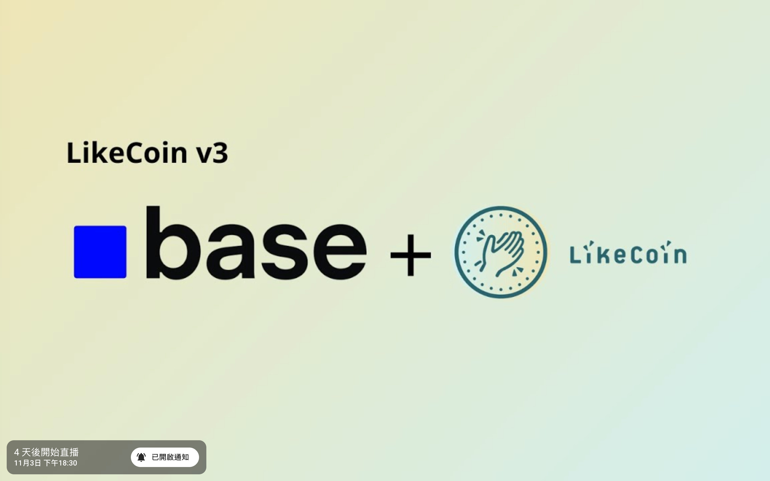The LikeCoin v3 upgrade, first proposed early last year, is now ready after 18 months of building community consensus and technical development. It is set to officially launch next Monday, November 3, 2025.
